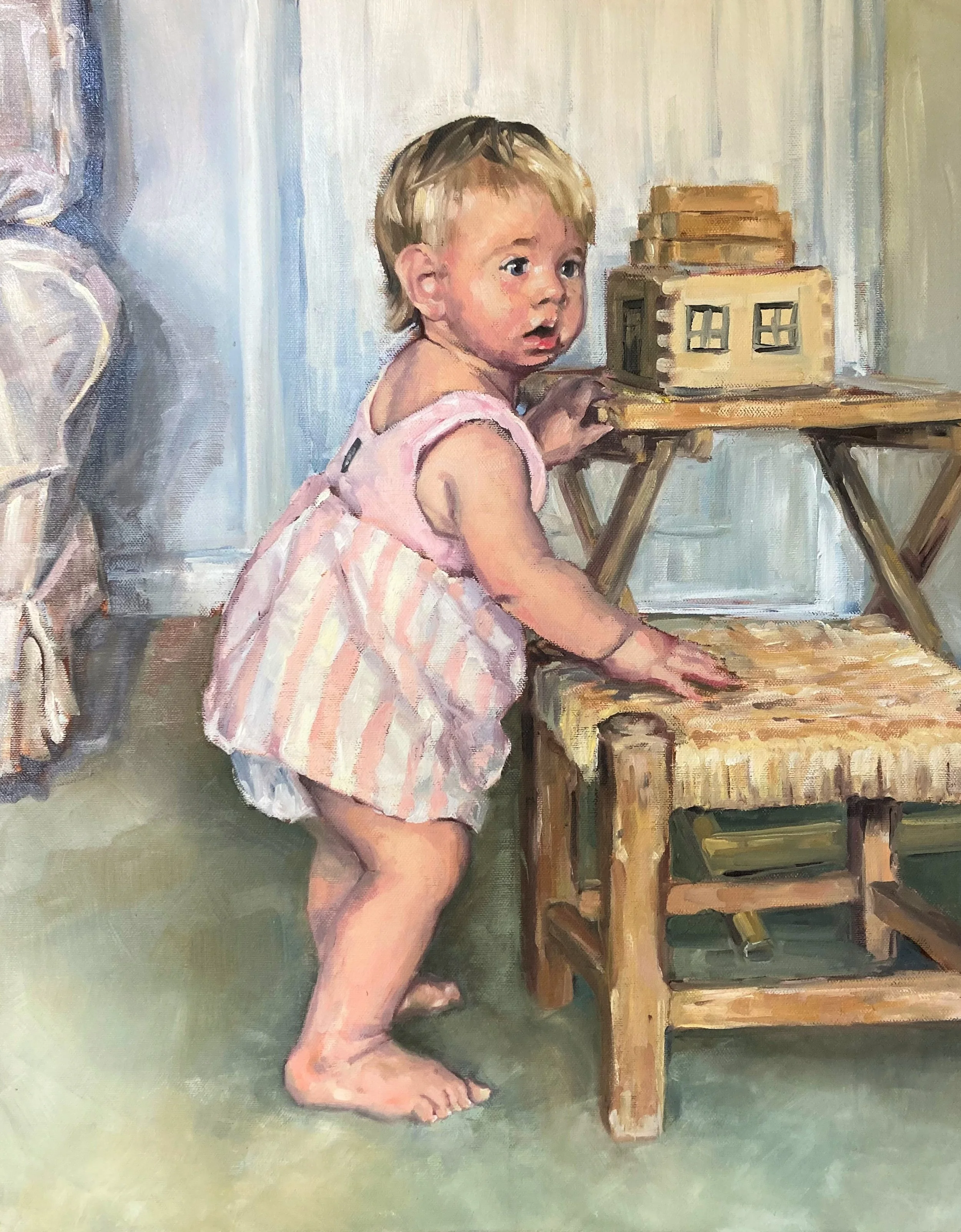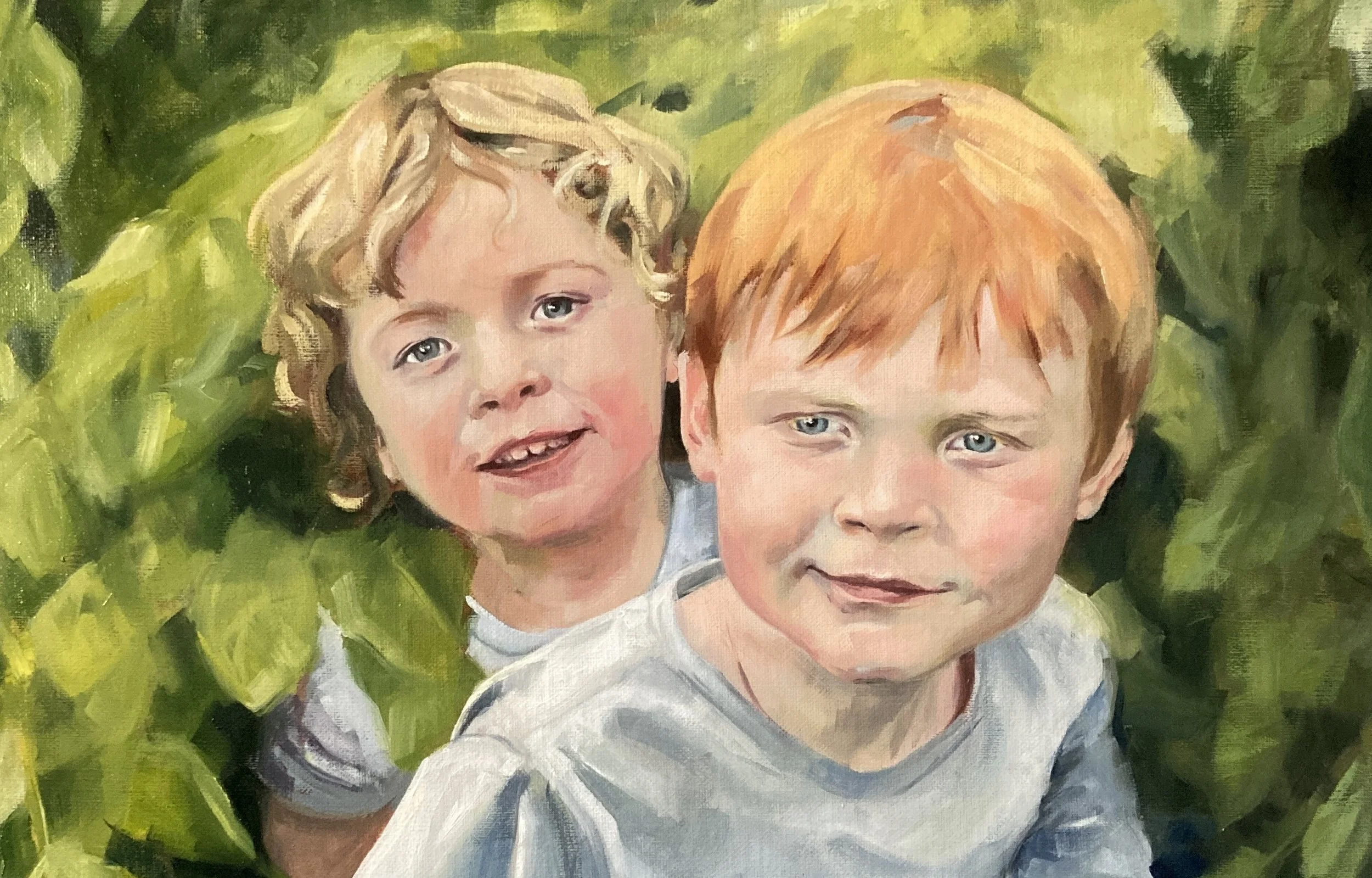 Oil portraits are painted on stretched canvas or canvasboard. I will do 1-3 sketches based on initial reference photos and then, from agreeing the composition to completion with an initial layer of varnish, it can take six to eight weeks or longer, depending on size.